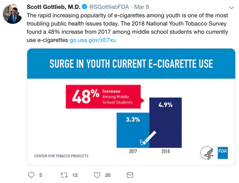 Take, for example, a tweet Gottlieb posted to his FDA Twitter feed on March 8th, 2019.