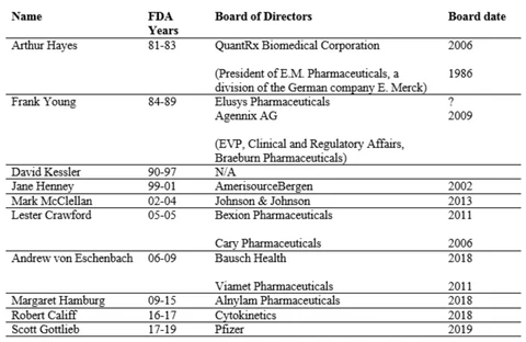 As Walid Gellad, Associate Professor of Medicine at Pitt Division of General Internal Medicine as well as director for the Center for Pharmaceutical Policy & Prescribing, points out, every single former director of the FDA in the last 38 years has joined a pharmaceutical board after leaving their position with only one exception (David A. Kessler, M.D.).